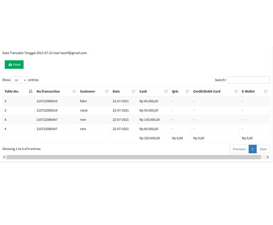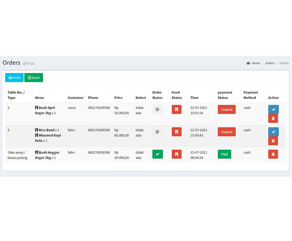 Setiap pemesanan makanan dan minuman akan terhubung langsung ke Komputer kasir secara REAL TIME begitu juga Status pembayaran sehingga tamu tidak terhubung secara langsung dengan pelayan maupun kasir terkait proses order makanan hingga pembayaran. Pengunjung/tamu juga dapat menguduh/Download Struk atau nota makanan melalui Menu Digital di layar HP sehingga tidak perlu ke konter kasir.