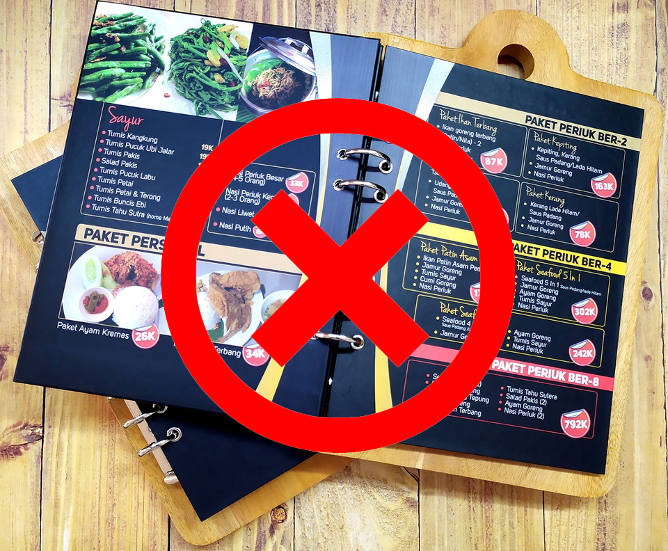 Salah satu upaya adalah membatasi penggunaan buku daftar makanan/minuman secara fisik dan diganti dengan Menu Digital yang tampil di Layar HP Pengunjung/tamu restoran,Café,Warung dll. Hal ini juga meminimalisir kontak langsung dengan pelayan terhadap pemesanan makanan atau minuman oleh pengunjung atau tamu restoran.